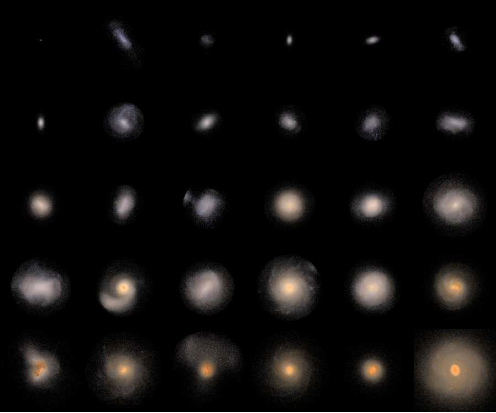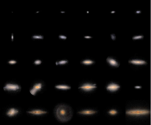 Fig.1 Left panel: face-on view of simulated NIHAO galaxies. Right panel is for edge-on view.